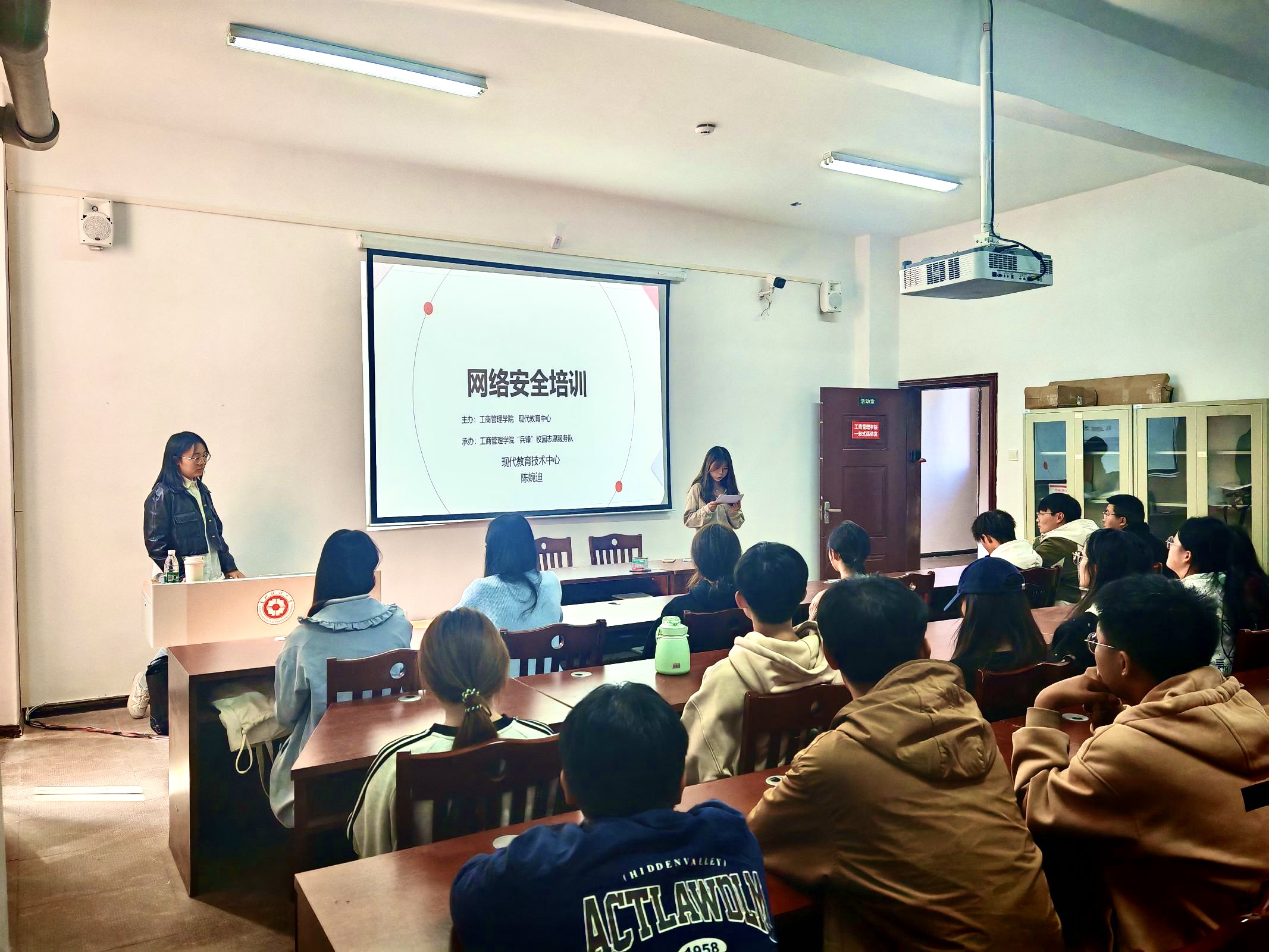 为积极响应国家加强网络安全工作的号召,2024年10月29日,必威西汉姆联“兵锋”校园志愿服务队联合现代技术教育中心在员工社区翠竹苑三栋四楼活动室,举办以“筑牢网络安全防线,提升自我防护能力”为主题的网络安全培训活动,培训由现代技术教育中心陈婉迪老师主讲,员工社区楼层长、寝室长和同学们一共40余人参加了培训。本次活动由翠竹苑社区第二党支部协办。