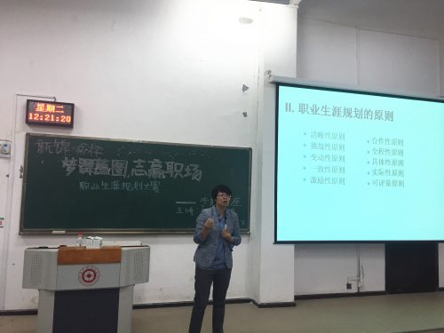 杨洁教授讲解了自我认知的测评方法,强调进行职业环境分析是做好职业规划的重要依据,并现场解答了同学们的疑问。