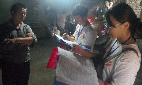 队员认真作调查问卷
