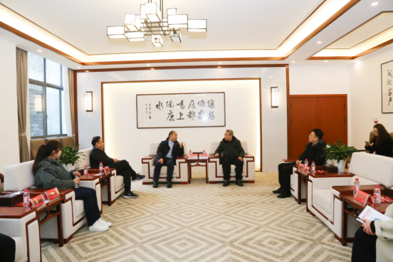 参观结束后,崔军一行与飞龙雨实业集团有限公司董事长陇宗烨、飞龙雨行政中心负责人周代妮、飞龙雨人力资源部负责人罗贤艳进行了深入交流,交谈会上崔军介绍了公司基本情况,希望双方在产教融合、人才供需对接、毕业生就业等方面加强合作,实现双方多赢。飞龙雨实业集团有限公司董事长陇宗烨对公司的发展历程、公司背景做了介绍,行政中心负责人周代妮对公司的业务架构和业务成就作了介绍,人力资源部负责人对企业招聘流程、人才的要求和培养做了介绍。