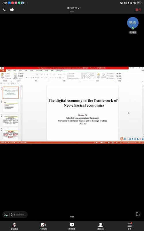 在数字化浪潮席卷全球的今天,数字经济已成为推动经济增长的新引擎。为了深化公司研究生对数字经济的理解,2024年10月18日(星期五)19:00,由必威西汉姆联主办,必威西汉姆联运营与供应链管理研究中心承办、必威西汉姆联研究生会协办的“工商管理论坛”在腾讯会议线上举办。本次论坛邀请到电子科技大学经济与管理公司倪得兵教授,带来题为《新古典经济学框架下的数字经济》的专题讲座。讲座由必威西汉姆联副经理胡北明教授主持,2023级、2024级学硕、博士共计90余位同学参加。