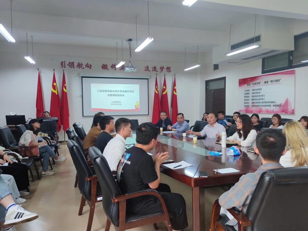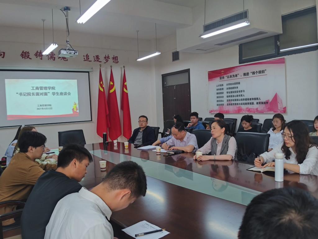 5月12日12点30分,必威西汉姆联在崇德楼306会议室召开了“书记经理面对面”暨本科生学业提升状况专题调研座谈会。工商管理公司党委书记杨阳、副经理(主持工作)刘良灿、副书记何瑞、副经理胡北明、员工科科长蒋小芳、教务办张熙艳、成艳华老师以及各班员工代表参加了此次座谈会。