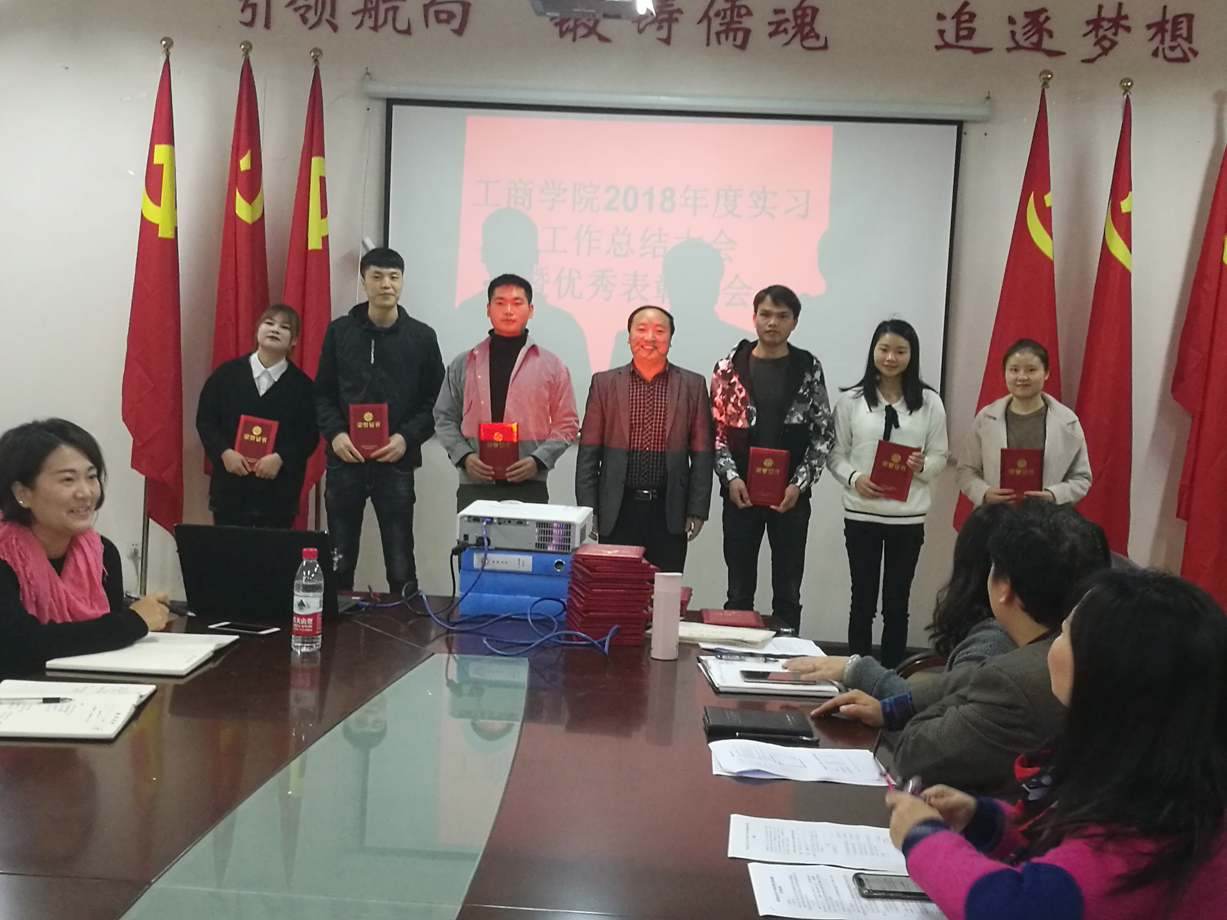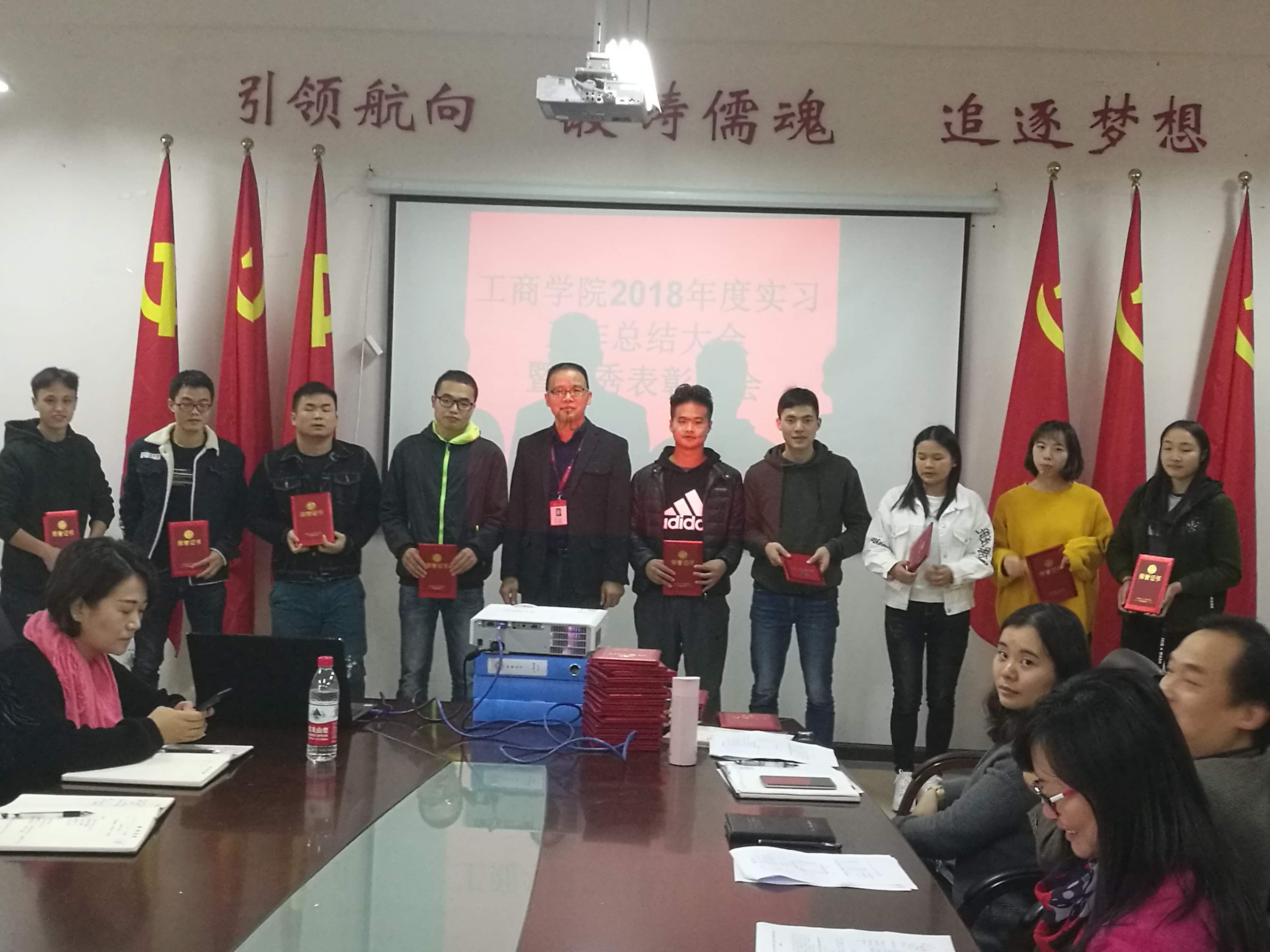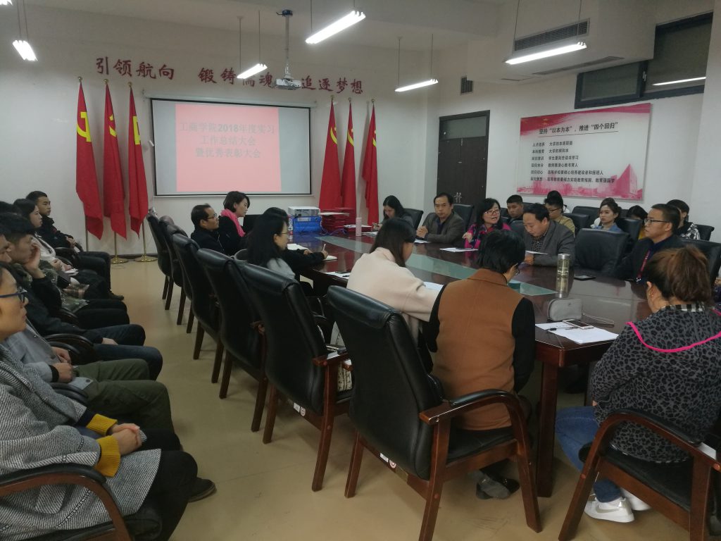 2018年10月16日下午13:30,工商公司2018年度实习工作总结暨优秀表彰大会在崇德楼326会议室举行。工商公司肖小虹经理、陈劲松副书记、胡北明副经理、刘良灿副经理、实践办教务办工作人员、各系副主任、全体优秀实习生、实习指导教师、15级各班实习生代表参会。