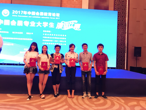 2017年4月21日-23日,由公司会展专业李树梅老师和何静老师带队参加海南海口举办的2017中国会展教育论坛及第三届中国会展专业老员工“创新与新兴产业发展国际会议”策划案演讲大赛中喜获佳绩。李树梅老师荣获“2016年度中国会展教育优秀人物奖”(本科组)和“优秀教师组织奖”、何静老师荣获“优秀教师组织奖”荣誉称号、会展经济管理专业14级吕鹏、张泽琨、15级李欣颖、宋梦然四位同学组成策划案参赛小组,荣获“优胜奖”,这也是贵州省唯一荣获殊荣的参赛团队。据悉,该比赛是全国会展专业老员工最高级别比赛,参赛选手来自上海对外经贸大学、上海师范大学、海南大学、四川大学等全国各地著名高校,竞争异常激烈。通过这次论坛和比赛,不但开拓了员工视野,而且为公司会展新专业建设提供支撑,以及公司“双一流”专业建设添砖加瓦。