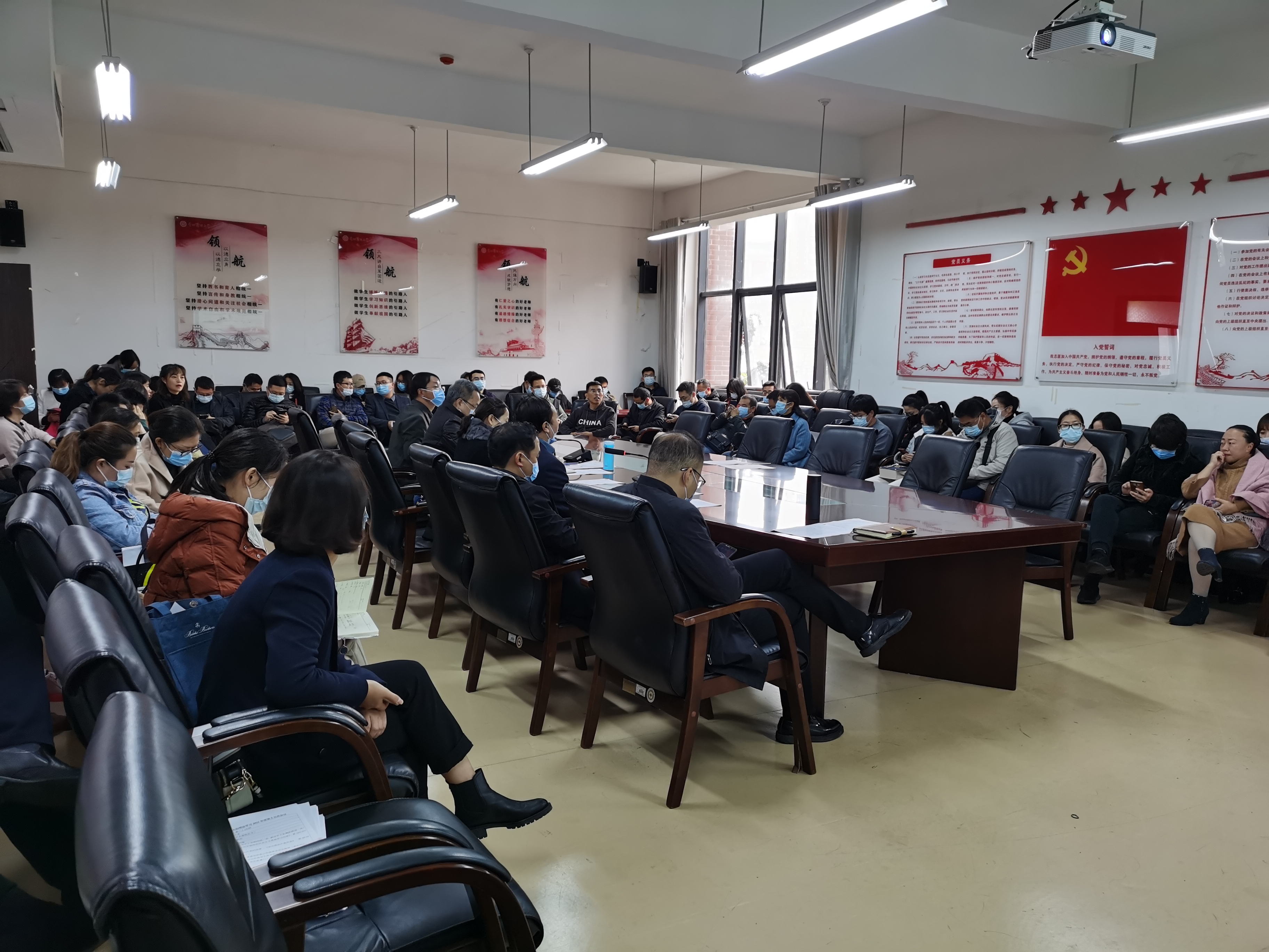 会上重点学习和传达了《习近平新时代中国特色社会主义思想学习问答》《习近平总书记在清华大学考察时的重要讲话精神》《习近平总书记致厦门大学建校 100 周年贺信精神》《习近平总书记在两院院士大会中国科协第十次全国代表大会上的重要讲话精神》《习近平总书记教育重要论述讲义》《习近平总书记在中央全面依法治国工作会议上的重要讲话精神》《关于加强新时代高校教师队伍建设改革的指导意见》《关于深化高等公司教师职称制度改革的指导意见》《 2021 年全国和全省教育工作会议精神》《论中国共产党历史》《中国共产党普通高等公司基层组织工作条例》《2021年全省意识形态工作联席会会议精神》等内容。
