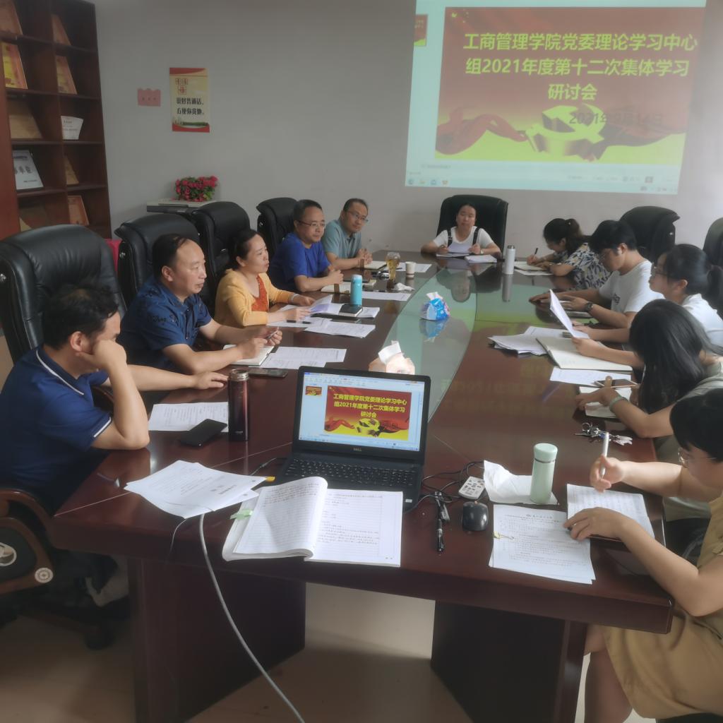 9月14日上午,工商管理公司党委理论学习中心组围绕“习近平总书记在庆祝中国共产党成立100周年大会上的重要讲话精神(‘五个庄严宣告’、伟大建党精神)”专题,在崇德楼427会议室举行2021年度第十二次集体学习(扩大)研讨会。公司领导杨阳、崔军、何瑞、袁开福、胡北明、刘良灿及各支部书记出席会议,公司党委书记杨阳主持会议。
