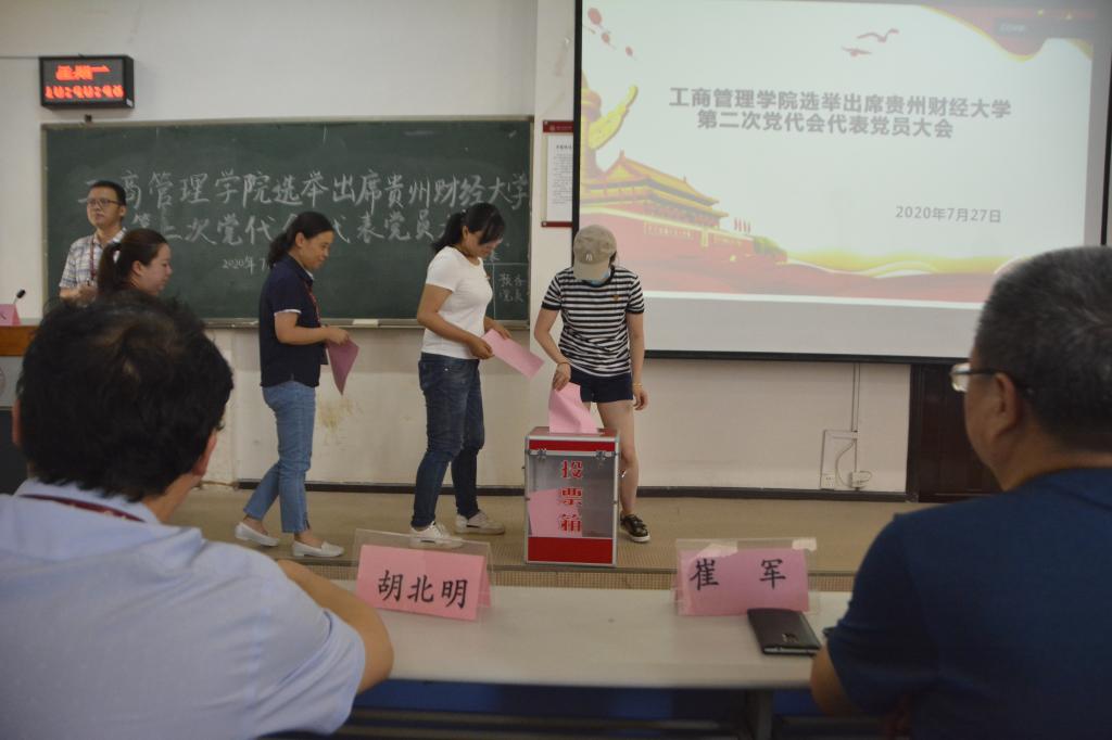 大会按照议程先后完成了介绍代表候选人预备人选产生过程及基本情况、审议通过《工商管理公司党委出席中国共产党必威西汉姆联第二次代表大会代表选举办法(草案)》、酝酿通过代表候选人名单、通过监票人名单和宣布计票人名单、选举必威西汉姆联出席中国共产党必威西汉姆联第二次代表大会代表五项议程。