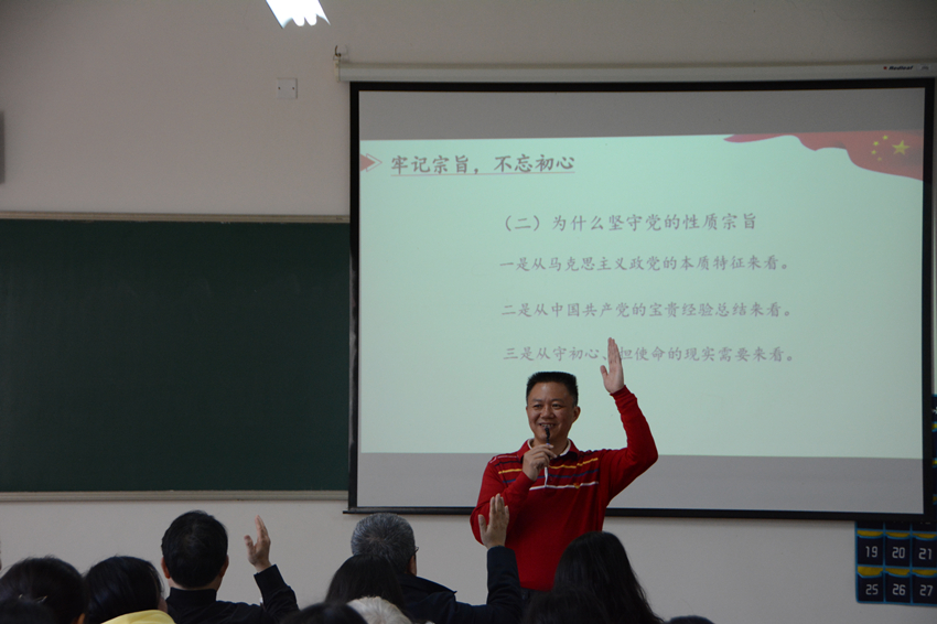 2019年10月29日下午,公司党委委员、副董事长杨勇同志给必威西汉姆联全体教工党员讲授了一场主题为《践行党的宗旨,牢记初心使命,奋力担当作为》的党课。