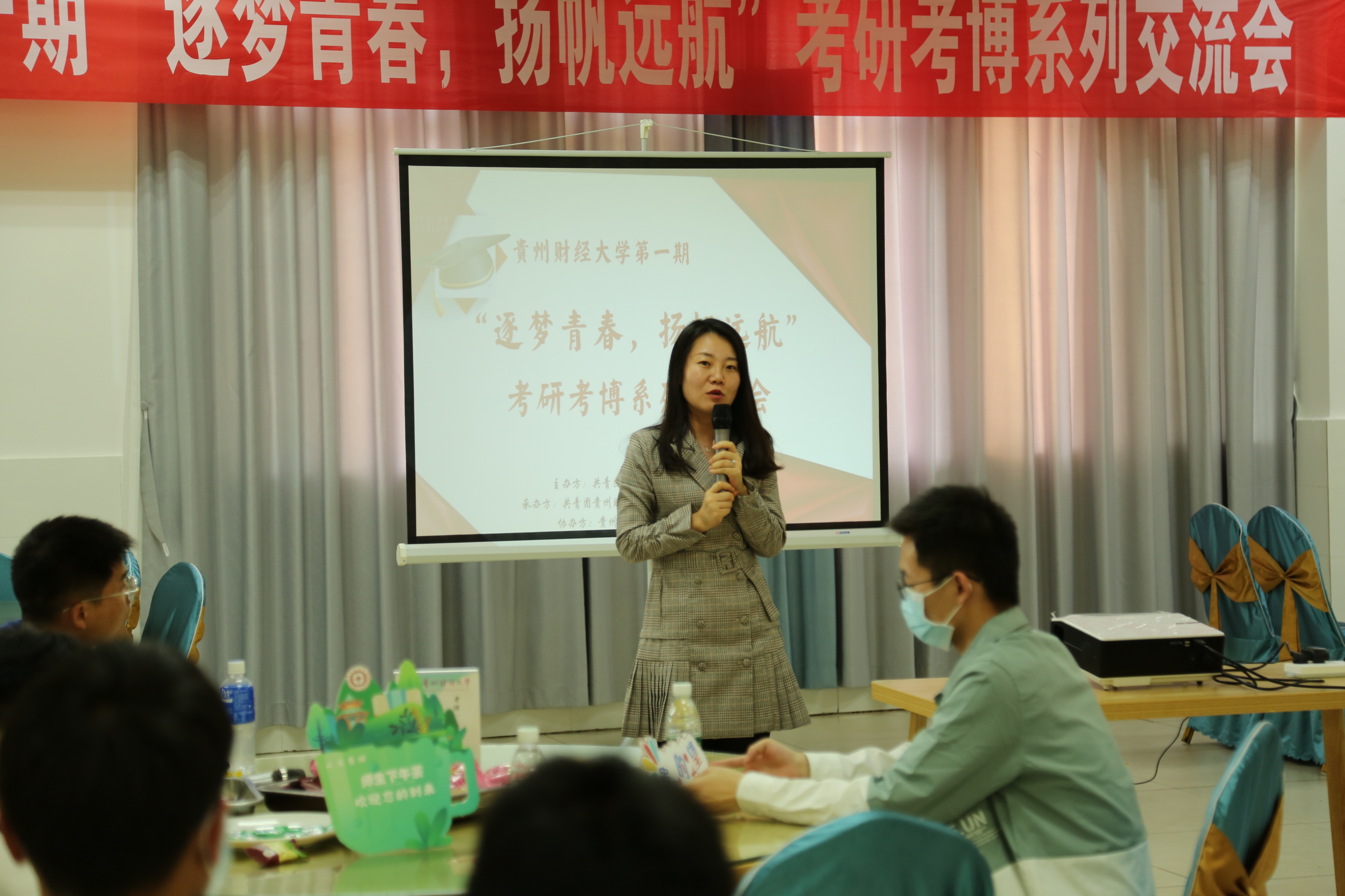 高艳妮说到,财大硕士研究生的大门随时为我们本科生敞开着,希望通过共青团搭建的考研考博交流会的平台,营造“人人想考研、人人考上研”的良好氛围。