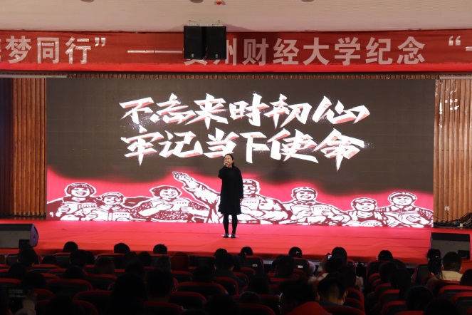 他们以新中国发展不同时期的经典歌曲为主线,唱响了贵财青年人的初心;他们讲述着以惊人速度发展的贵州,展现了独具特色的侗族大歌,带领大家领略贵州迷人的民族风情;他们讲述了贵财人砥砺奋进的故事,他们吟诵着贵财青年的报国志,阐释着青年人的初心和使命。宣讲会现场精彩纷呈,高潮迭出,观众们多次报以热烈的掌声。