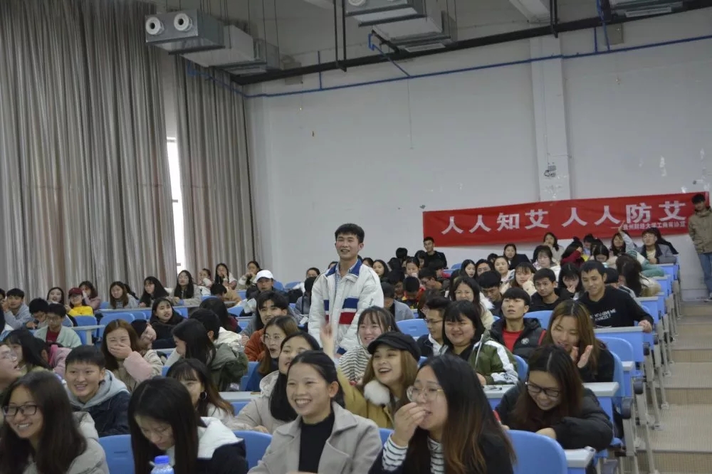 2019年12月1 日是第32个“世界艾滋病日”,在这个特殊节日来临之际,为加强艾滋病的预防宣传,普及艾滋病的相关知识,营造文明、和谐的人际交流环境,必威西汉姆联于2019年11月26日在进学楼3-1教室开展“人人知艾,人人防艾”主题艾滋病宣讲会,工商管理公司党委常务副书记崔军、必威西汉姆联团委负责人孔淑华,以及280多名同学参与此次活动。