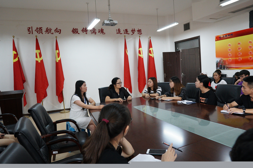 2018年8月28日下午四点,工商公司团委在崇德楼306召开了2018级迎新志愿者培训会,公司党委副书记范嘉虹、院团委负责人孔淑华老师、员工干部及全体迎新志愿者出席了本次会议。