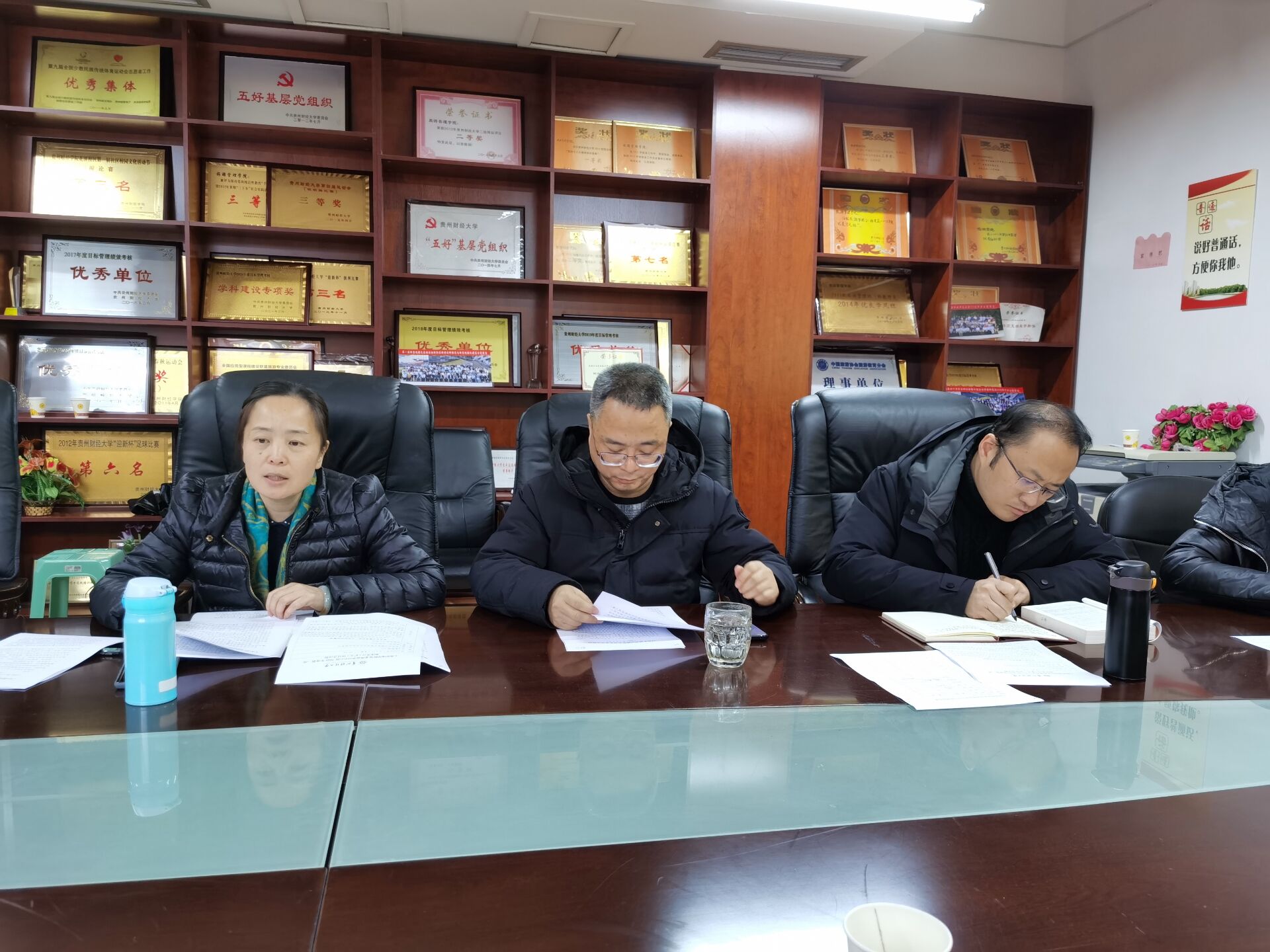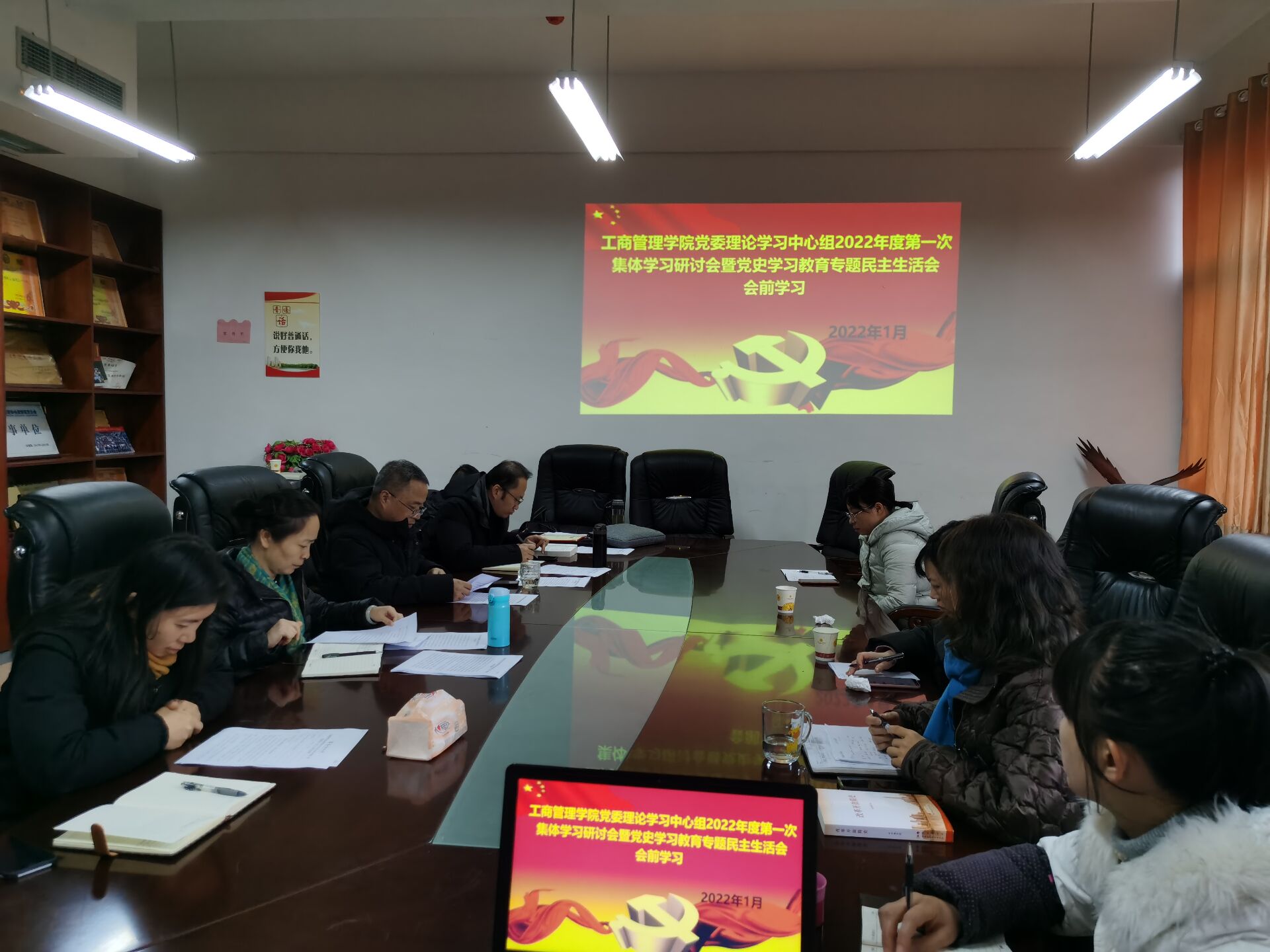 2022年1月6日,工商管理公司党委理论学习中心组在崇德楼427会议室举行2022年度第一次集体学习(扩大)研讨会暨党史学习教育专题民主生活会会前学习,就本次专题学习内容和党史学习教育心得体会开展集中学习研讨。必威西汉姆联领导杨阳、崔军、何瑞、胡北明、刘良灿及各党支部书记,贵州旅游经济与管理研究院经理杨春宇出席会议,工商管理公司党委书记杨阳主持会议。