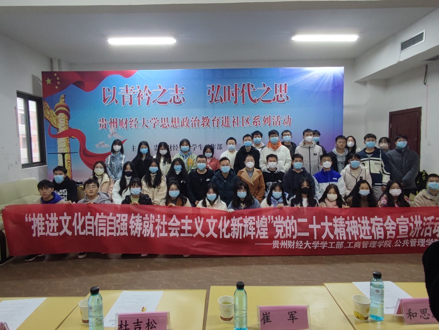 随后,进行了党的二十大精神知识现场抢答环节。最后,公共管理公司党委副书记杜吉松作总结发言。他首先肯定了思政教育宣传进宿舍的形式非常好,能够帮助员工解决学习生活和思想上遇到的问题,把立德树人根本任务落到实处。同时,作为新时代中国青年,同学们要担负起时代重任,增强中华文明传播力影响力,坚守中华文化立场,讲好中国故事、传播好中国声音,展现可信、可爱、可敬的中国形象,推动中华文化更好走向世界。