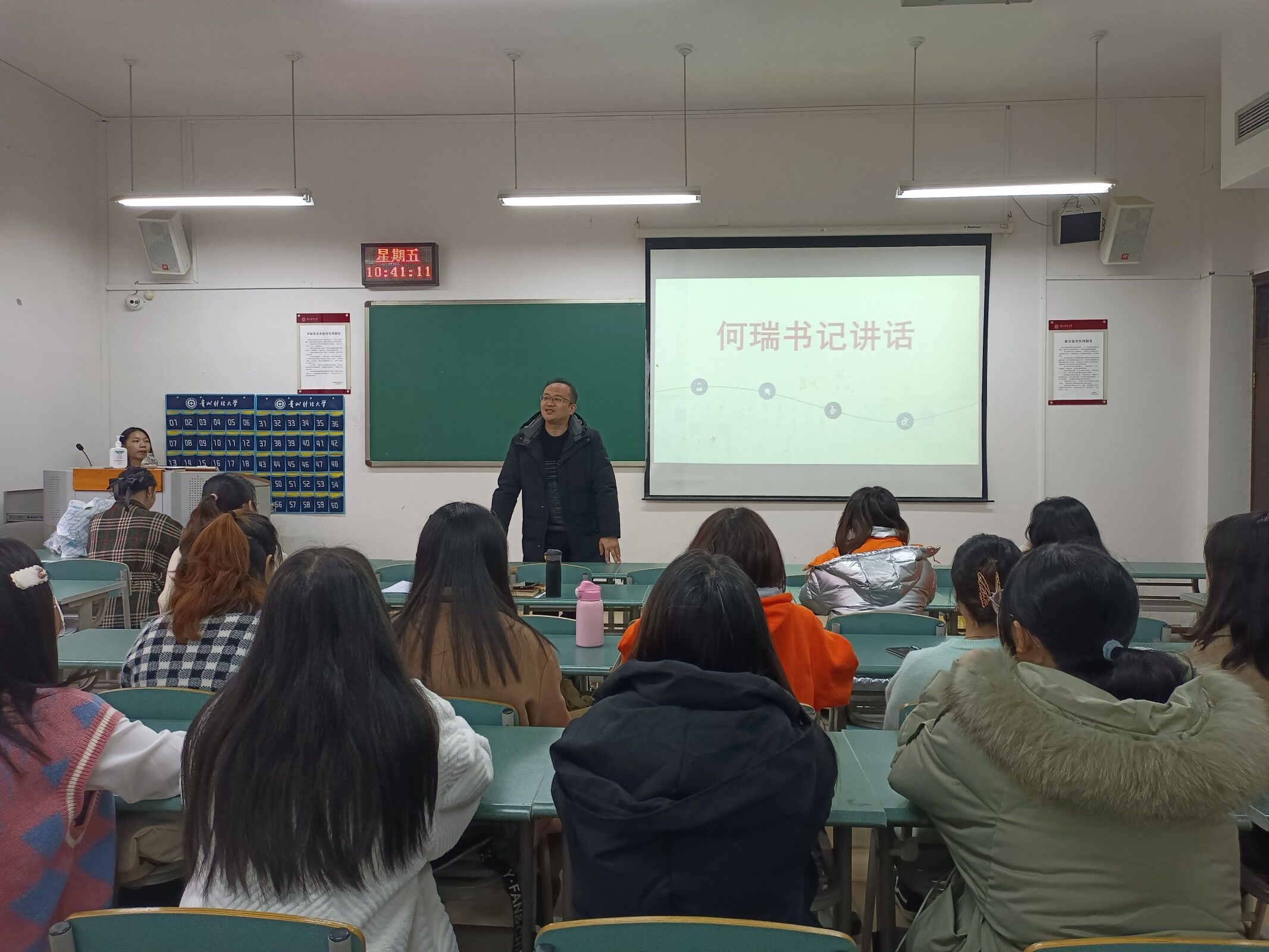 2021年11月19日上午,工商管理公司党委副书记何瑞参加了2019级市场营销2班“谈未来促发展 完善自我 实现梦想”主题班会,班会在在崇德楼2-20教室举行。