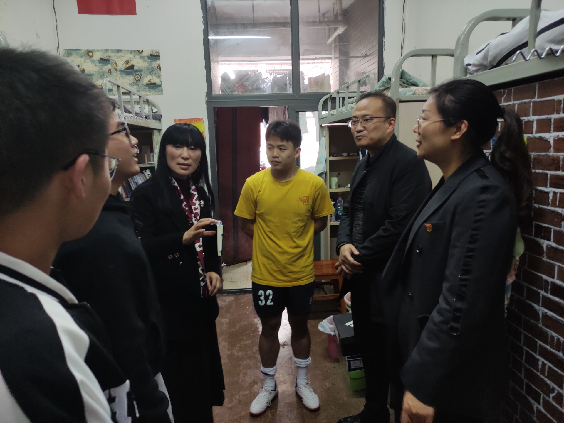 主题班会后,彭洁来到翠竹苑二栋员工寝室,走访了解同学们的学习和生活情况,叮嘱同学们要珍惜良好的学习生活环境,既要努力学习文化知识,也要走出寝室,积极参加校园文体活动,增强身体体质。并现场对接公司相关部门,处理了个别寝室和楼道出现的设施破损等情况。