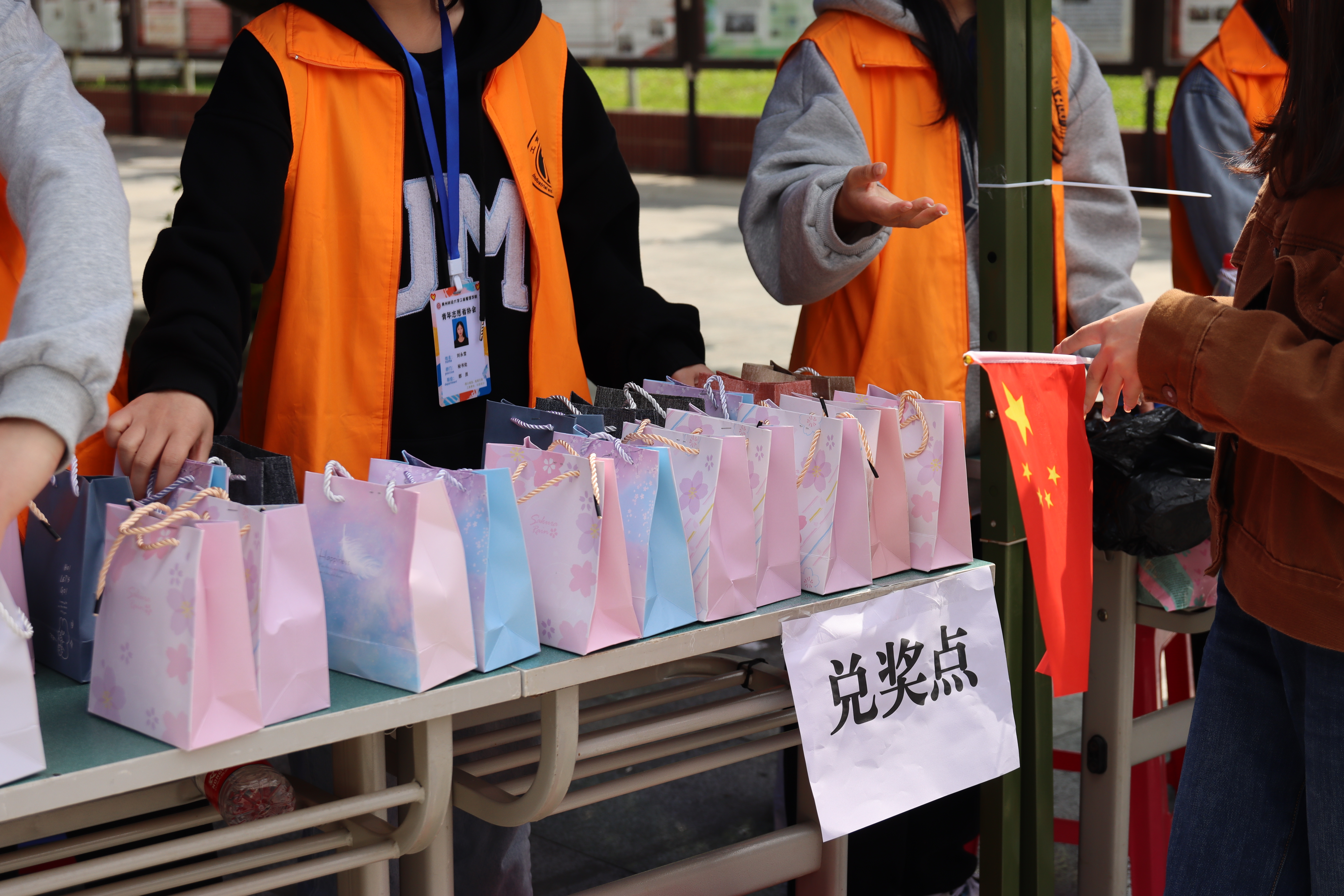 快看!已经有不少同学来到了第一个游戏点“过关斩将”,他们小心翼翼地吹起浮在杯子上面的乒乓球,一个、两个、三个,终于,乒乓球成功地过了三个装满水的一次性杯子,第一关完美通过。接着,同学们来到了第二关“天选之子”,在这个游戏中,有些同学很幸运的投骰子投到数字“6”,直接进入下一关,有些同学则没有那么幸运了,投到了其它数字,则就要说出带有此数字的成语。本轮游戏既给同学们带去了乐趣,又丰富了知识。最后,第三关“最强大脑”,同学们随机从选盒里抽选题,回答正确则通关成功,本轮选题涉及政治思想等方面,充实了同学们的政治思想理论素养。顺利通过三个游戏点的同学,也领取到了属于他们自己的小礼品。