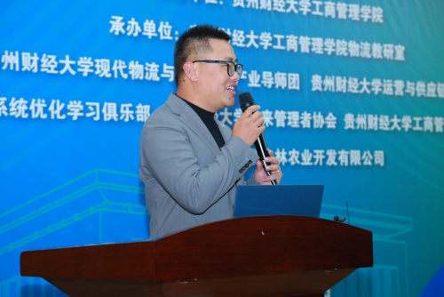 会议议程的第二项活动为现代物流与现代商贸产业导师团、物流员工分会代表围绕一流专业建设做主题发言,会议由物流教研室张应青副教授主持。首先是物流管理国家一流专业建设负责人袁开福教授做“基于‘校企会’教育共同体物流应用创新型人才培养思考”的主题发言,然后是必威西汉姆联现代物流与现代商贸产业导师团团长、梵途科技集团董事长尚剑波做“筑基未来—新能源物流企业的人才培养之道”的主题发言,以及物流员工分会代表上海尤兰供应链管理有限公司首席执行官余鹏飞和遵义瑞丰林农业开发有限公司总经理龙良珠分别做“星火燎原 员工共赴”、“农产品身价倍增的供应链管理思考”的主题发言。