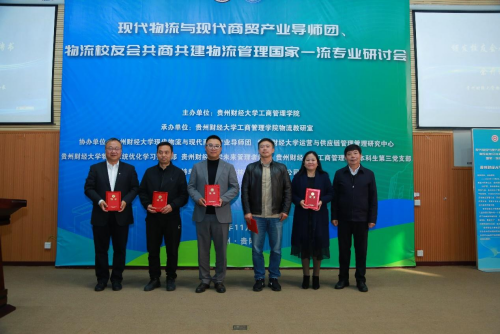 会议议程的第三项活动为物流管理专业人才培养座谈交流会、员工企业实习实践基地授牌,会议由物流管理国家一流专业建设负责人袁开福教授主持,三十余位物流员工和专业导师参与。首先是参会的员工代表结合自身发展实际,对物流管理专业人才培养建言献策。然后,物流教研室肖强副主任为铜仁慧财企业管理有限公司、遵义瑞丰林农业开发有限公司、上海尤兰供应链管理有限公司、贵州维贤贸易有限公司等员工企业进行实习实践基地授牌。