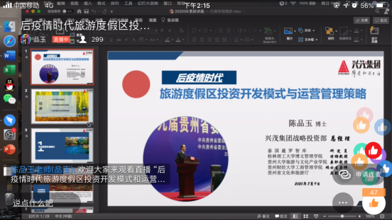 首先,陈品玉博士从生态旅游快速增长、旅游度假区投资与开发模式、旅游度假区运营管理策略三个方面简要分析了疫情后旅游度假区的现状。其次从旅游度假区延展到整个旅游业的现状分析,让旅游管理专业的员工了解旅游经营管理中出现的新问题、新观念、新经验、新方法;在增加感性认识的基础上,对我国旅游行业的现状、未来发展有一个基本的认识。