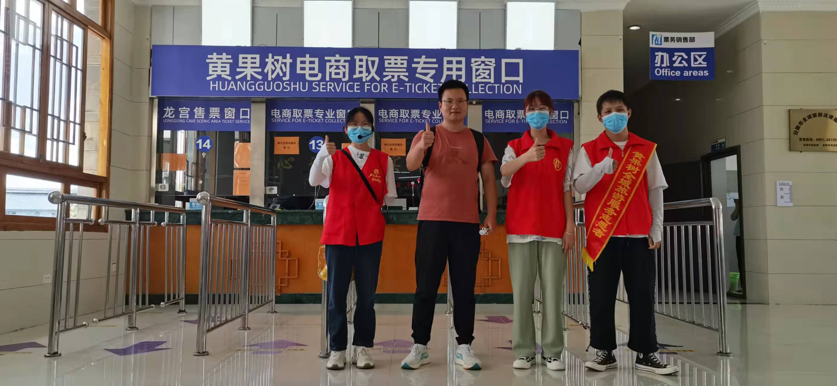 首先,郭向阳老师来到黄果树景区票务部门,通过交谈了解员工的工作状况、工作内容,以及实习生生活状况及遇到的困难。与此同时,票务部门主管领导对实习生给予高度评价,肯定了实习生的吃苦耐劳精神和其较强的工作能力,每位实习生都能在自己的工作岗位上主动积极承担责任。