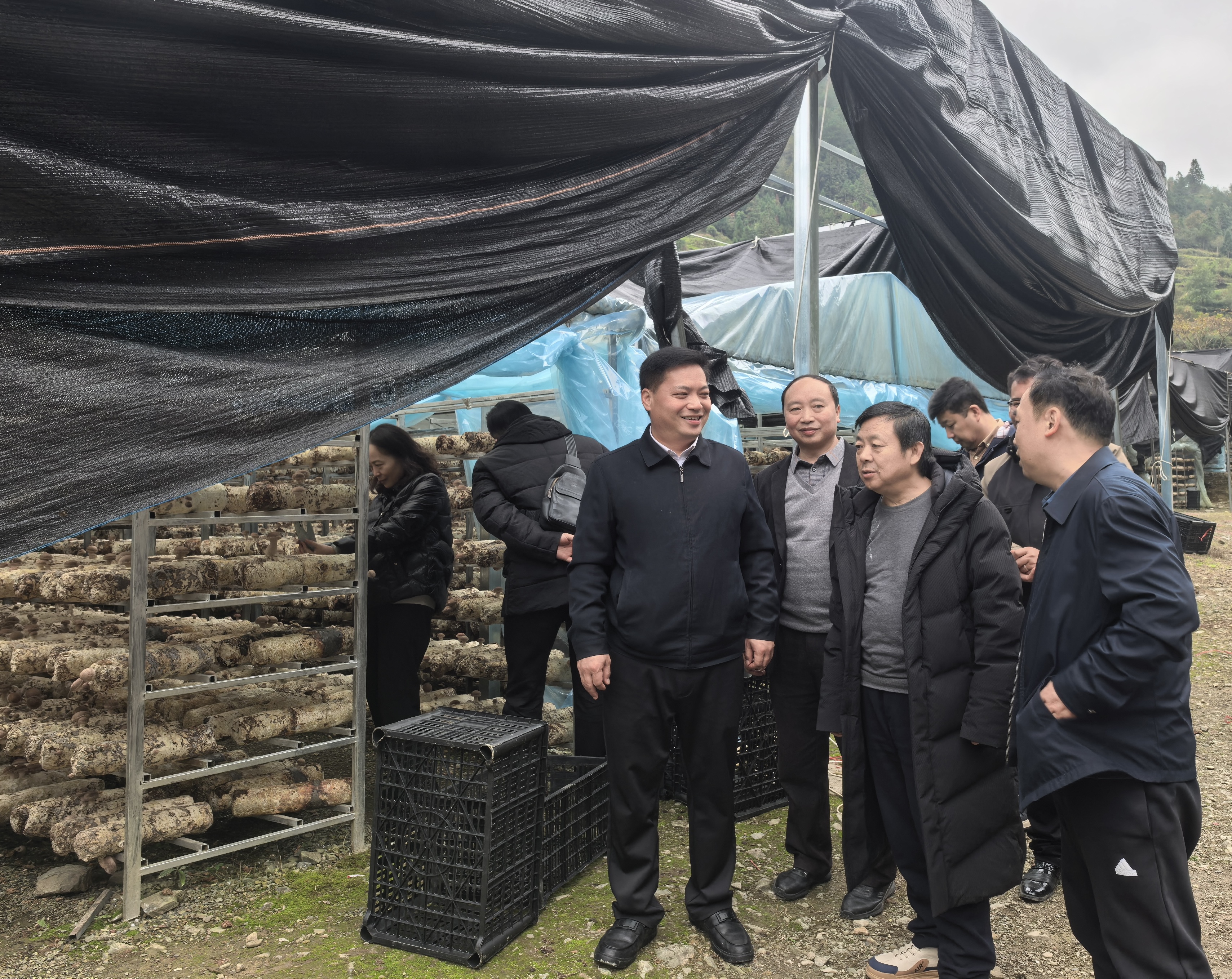 为深度赋能乡村振兴战略,推动产学研用深度融合,2025年11月11日,必威西汉姆联副厅长级干部徐大佑教授带队,工商管理公司党委书记杨阳、经理刘良灿等党政班子成员及民建贵财支部代表一行13人,赴黔东南州台江县南宫镇交宫村开展促乡村振兴相关活动,并看望和慰问公司驻村第一书记杨炳成副教授。南宫镇党委书记熊庆文、交宫村党支部书记欧阳光前、贵州浙丰农业有限责任公司总经理叶成宝等共同参与此次调研活动。